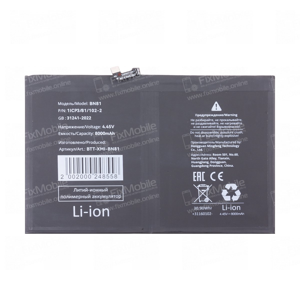- Тип товара:Аккумулятор