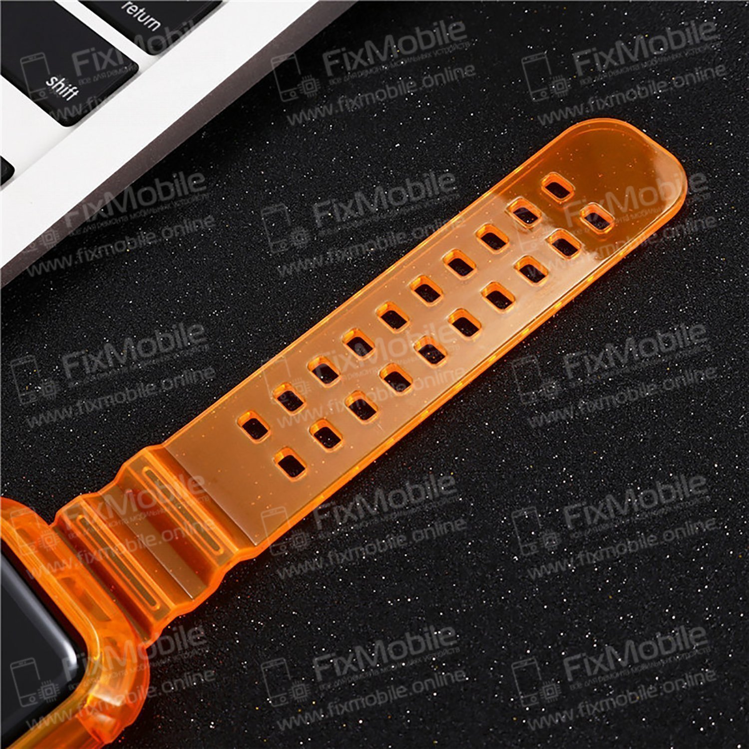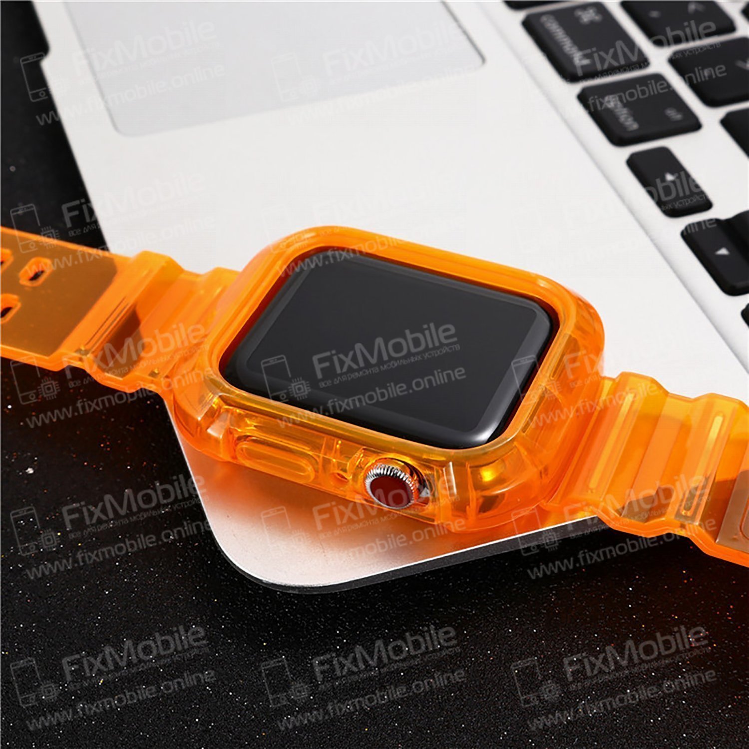 Ремешок для Apple Watch 44 mm прозрачный с кейсом (оранжевый)